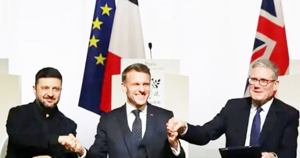 যুদ্ধ পরবর্তী ইউক্রেনের নিরাপত্তা নিশ্চিত করতে ফ্রান্স ও যুক্তরাজ্য সেনা পাঠানোর পরিকল্পনা ঘোষণা করেছে। এ জন্য মঙ্গলবার (6 জানুয়ারি) প্যারিসে অনুষ্ঠিত কোয়ালিশন অব দ্য উইলিং এর বৈঠকে একটি গুরুত্বপূর্ণ ঘোষণা স্বাক্ষর করা হয়। এই আলোচনায় ইউরোপীয় নেতাদের সাথে যুক্তরাষ্ট্রের প্রতিনিধি স্টিভ উইটকভ বলেছেন, নিরাপত্তা বিষয়ক অগ্রগতি হলেও ভূমি ভাগাভাগির মতো জটিল সমস্যা সমাধানে আরও আলোচনা প্রয়োজন। একই সময়ে, রাশিয়া এবং ইউক্রেনের মধ্যে পাল্টাপাল্টি হামলা চলতে থাকায় পরিস্থিতি আরও কঠিন হয়ে উঠেছে। মঙ্গলবার রুশ প্রতিরক্ষা দপ্তর জানায়, তারা ইউক্রেনের ৩ শতাধিক ড্রোন সফলভাবে ভূপাতিত করেছে এবং যুক্তরাষ্ট্র নির্মিত দুইটি হিমার্স রকেট ধ্বংস করেছে। এর বিপরীতে, ইউক্রেনের সেনারা কোস্ট্রেমা ওব্লাস্টে একটি রুশ সামরিক অস্ত্রাগারে আঘাত হেনেছে বলে জানানো হয়েছে। আন্তর্জাতিক দিক থেকে ইউক্রেনের মুক্তিপ্রয়োজনীয় নিরাপত্তা নিশ্চিত করতে আঞ্চলিক নেতারা প্যারিসে একত্রিত হয়ে যুদ্ধ পরবর্তী পরিকল্পনা আলোচনা করেন। সভায় স্পষ্ট হয়, যুদ্ধ শান্তিপূর্ণভাবে সমাপ্ত হলে কিয়েভের নিরাপত্তার জন্য সেনা পাঠানোর বিষয়ে ফরাসি ও ব্রিটিশ সরকার আনুষ্ঠানিক সিদ্ধান্ত নেবে। এই ঘোষণা স্বাক্ষর করেন ফরাসি প্রেসিডেন্ট ইমানুয়েল ম্যাক্রোঁ ও ব্রিটিশ প্রধানমন্ত্রী কিয়ার স্টারমার। ম্যাক্রোঁ বলেন, ‘আমরা চাই না এমন কোনো শান্তি যা কিয়েভের নিরাপত্তাকে ঝুঁকির মধ্যে ফেলবে। যুক্তরাষ্ট্রও এই বিষয়ে আমাদের সাথে একমত, তারা ন্যাটোর গুরুত্বপূর্ণ অংশ। এতে কিয়েভের জন্য শান্তি ও নিরাপত্তা নিশ্চিত হবে।’ স্টারমার বলেন, ‘আমাদের লক্ষ্য হল কিয়েভের জন্য স্থায়ী শান্তি নিশ্চিত করা। আমরা তিনটি প্রক্রিয়ার মাধ্যমে এগোচ্ছি: প্রথমে ইউক্রেনের পরিস্থিতি পর্যবেক্ষণ, দ্বিতীয়ত শান্তি বাহিনী পাঠানো, এবং তৃতীয়ত রুশ আক্রমণের বিরুদ্ধে ঐক্যবদ্ধ অবস্থান।’ জেলেনস্কি নিজেও ঘোষণা দেন, এই সমঝোতায় জল, আকাশ ও স্থল নিরাপত্তাসহ গুরুত্বপূর্ণ বিষয়ে আলোচনা অন্তর্ভুক্ত। এই আলোচনায় যুক্তরাষ্ট্রের প্রতিনিধিরা ছিলেন স্টিভ উইটকভ ও জ্যারেড কুশনার। তারা বলেন, যুদ্ধবিরতিসহ নিরাপত্তা বিষয়ক অগ্রগতি হয়েছে এবং রাশিয়া-ইউক্রেনের মধ্যে আলোচনা এগিয়ে যাচ্ছে। স্টিভ উইটকভ আরও বলেন, ‘নিরাপত্তা ইস্যুতে অগ্রগতি হয়েছে, তবে ভূমি ভাগাভাগির মতো জটিল বিষয়গুলো নিয়ে আলোচনা চলছে। আমি আশাবাদী দ্রুত সমাধান আসবে।’ এদিকে, এই বৈঠকে জার্মানি, পোল্যান্ড, ইতালি সহ প্রায় ৩৫টি দেশের প্রতিনিধিদল অংশ নেয়, তবে অন্য যে কোনো দেশই যুদ্ধ পরবর্তী সেনা পাঠানোর জন্য কোন নিশ্চিত ঘোষণা দেননি।