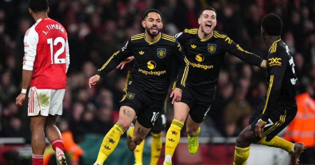 ইংলিশ প্রিমিয়ার লিগের শিরোপা দৌড়ে বড় প্রভাব ফেলেছে ম্যানচেস্টার ইউনাইটেড। রবিবার রাতে অনুষ্ঠিত উত্তেজনাপূর্ণ এই ম্যাচে তাদের অসাধারণ জয়ের মধ্য দিয়ে তারা ফিরে পেল নিজের শক্তি ও আত্মবিশ্বাস। এমিরেটস স্টেডিয়ামে ঘরের মাঠে প্রতিদ্বন্দ্বী আর্সেনালকে ৩-২ গোলে হারিয়ে ইউনাইটেড দেখিয়ে দিলো, তারা এখনও শিরোপা লড়াই থেকে পিছিয়ে থাকেনি। এই জয়ের ফলে লিগের রেসটি আরও রোমাঞ্চকর হয়ে উঠেছে। অনুষ্ঠিত খেলায় দু’দলই প্রথম থেকেই আক্রমণে অগ্রসর হয়। ম্যাচের ২৯তম মিনিটে স্বাগতিক আর্সেনাল প্রথম লিড নেয়, যখন বুকায়ো সাকার চিপে মার্টিন ওডেগার্ডের দুর্দান্ত ভলি দেখিয়েছিলেন। তবে ডিফেন্ডার লিসান্দ্রো মার্তিনেজের ভুলের কারণে ইউনাইটেড সমতায় ফিরতে সময় নেয়নি। আর্সেনালের এই দুর্ভাগ্যজনক ভুলের ফলে, ৮ মিনিট পরই ব্রায়ান এমবিউমো একটি সুযোগ কাজে লাগিয়ে গোল করেন। এরপরই ম্যাচের গতি পাল্টে যায়। দ্বিতীয় অর্ধের শুরুতেই ফরাসি স্ট্রাইকার প্যাট্রিক ডরগুরের দারুণ শটে ইউনাইটেড এগিয়ে যায়। তবে আর্সেনাল মরিয়া হয়ে ওঠে এবং ম্যাচের ৮৪তম মিনিটে জটলার মধ্যে গোল করে সমতা ফেরায়। তখন মনে হচ্ছিল, অন্তত এক পয়েন্ট নিয়ে মাঠ ছাড়বে গার্দিওলার দল। কিন্তু শেষ মুহূর্তে নাটকীয়তা ঘটে। বদলি খেলোয়াড় ম্যাথিউস কুনহার ৮৭ মিনিটে নেওয়া বাঁকানো শটের মাধ্যমে জার্সির জয় নিশ্চিত করেন। এই জয় ছিল ইউনাইটেডের জন্য দারুণ গুরুত্বপূর্ণ, কারণ এই মৌসুমে এটিই তাদের প্রথম হার আর্সেনালের মাঠে। এই ফলের ফলে প্রিমিয়ার লিগের টেবিলে পরিস্থিতি আরও জটিল হয়ে উঠেছে। যদিও আর্সেনাল এখনও শীর্ষে থাকলেও তাদের পয়েন্ট সংখ্যা ৫০, আর পিছিয়ে নেইমচেস্টার সিটি ও অ্যাস্টন ভিলা, দু’দলই এখন ৪৬ পয়েন্টে অবস্থান করছে। অন্যদিকে, টানা দু’জয়ে ৩৮ পয়েন্ট নিয়ে চতুর্থ স্থানে উঠেছে ম্যানচেস্টার ইউনাইটেড। এই জয় নতুন আত্মবিশ্বাস যোগিয়েছে মাইকেল ক্যারিকের দলের খেলোয়াড়দের, যারা এখনো শিরোপা লড়াইয়ে গুরুতর প্রতিযোগিতার আকাঙ্ক্ষা রাখে।