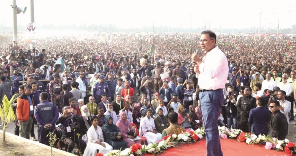 তারেক রহমান বলেন, ‘প্রিয় ভাই-বোনেরা, মানুষ নিজের ভোটের অধিকার রক্ষায় তাদের ওপর ভরসা করে যারা দীর্ঘদিন থেকে দেশের জন্য কাজ করেছে। মানুষ তখনই ভরসা করে একজনের উপর, যখন বুঝতে পারে সে বিপদের সময় পাশে থাকবে, সেই মানুষটিই সত্যি দেশের স্বার্থে অবদান রাখতে পারে।’ তিনি আরো যোগ করেন, ‘এই গুণাগুণগুলো শুধুমাত্র বিএনপির মধ্যে দেখা যায়। এ জন্যই জনগণ আমাদের উপর আস্থা রাখে।’