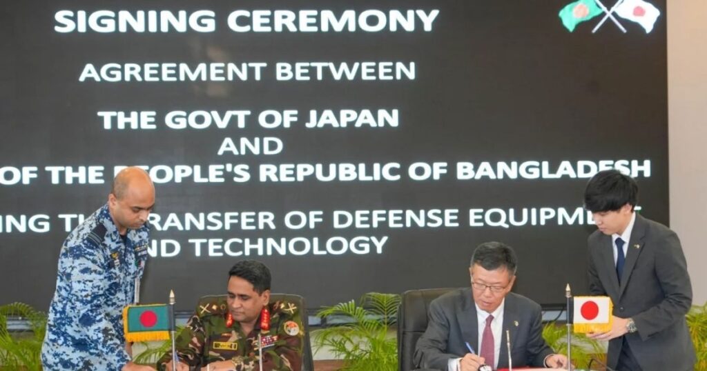 মঙ্গলবার (৩ ফেব্রুয়ারি) ঢাকায় বাংলাদেশ সরকারের পক্ষ থেকে এবং জাপানের প্রতিনিধিরা এক আনুষ্ঠানিক চুক্তিতে স্বাক্ষর করেছেন, যা দুNationের মধ্যে প্রতিরক্ষা সরঞ্জাম ও প্রযুক্তি হস্তান্তর সংক্রান্ত। এই চুক্তিতে বাংলাদেশের পক্ষের প্রতিনিধিত্ব করেন সশস্ত্র বাহিনী বিভাগের প্রিন্সিপাল স্টাফ অফিসার লেফটেন্যান্ট জেনারেল এস এম কামরুল হাসান, जबकि জাপানের পক্ষে নিযুক্ত দেশটির রাষ্ট্রদূত সাইদা শিনিচি ফেলেছেন।