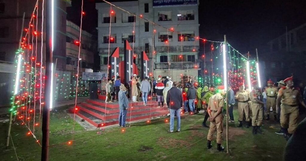 অমর একুশের প্রথম প্রহরে বাউফলের পাবলিক মাঠ সংলগ্ন কেন্দ্রীয় শহীদ মিনারে ভাষা শহীদদের প্রতি শ্রদ্ধা জানাতে আসেন স্থানীয় সংসদ সদস্য ও জামায়াতের কেন্দ্রীয় নেতা ড. শফিকুল ইসলাম মাসুদসহ বিভিন্ন রাজনৈতিক ও সামাজিক সংগঠনের নেতৃবৃন্দ। তবে একটির দৃষ্টিতে নজর কাড়েন, শহীদ মিনারের চারপাশের ঝলমলে আলোকসজ্জা ও ঝাড়বাতি। সাধারণত ২১শে ফেব্রুয়ারি ভাষা শহীদদের স্মরণে একটি শোকাবহ দিন হিসেবে পালিত হলেও, বাউফল প্রশাসনের এই ব্যতিক্রমী সাজসজ্জাকে অনেকে মানছেন না।