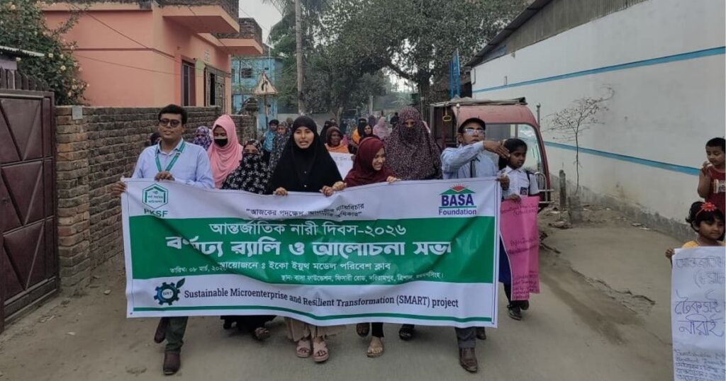 বিশ্ব ব্যাংক, পিকেএসএফ এবং বাসা ফাউন্ডেশনের অর্থায়নে এবং তাদের বাস্তবায়নে ‘স্মার্ট’ প্রকল্পের আওতায় ত্রিশাল ফিশারী রোড এলাকায় ইকো ইয়ুথ মডেল পরিবেশ ক্লাবের উদ্যোগে একটি সচেতনতামূলক র্যালি অনুষ্ঠিত হয়। এই র্যালি প্রধান সড়কগুলো দিয়ে পাড়ি দিয়ে জনগণের মধ্যে পরিবেশ রক্ষায় নারীর অংশগ্রহণের প্রয়োজনীয়তা তুলে ধরে।