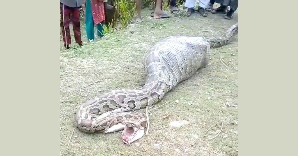 বাগেরহাটের শরণখোলা উপজেলায় সুন্দরবন থেকে লোকালয়ে এসে একটি অজগর সাপ দিনমজুর