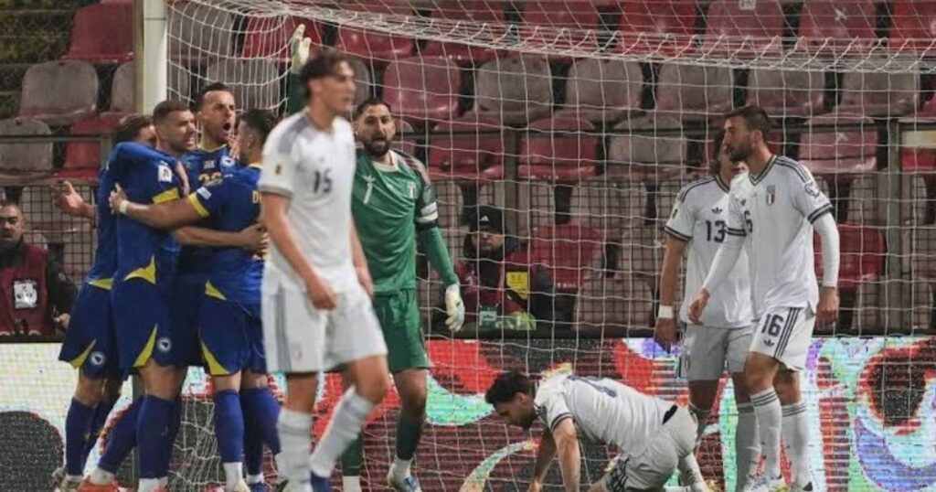 বিশ্ব ফুটবলের অন্যতম পরাশক্তি এবং চারবারের বিশ্বচ্যাম্পিয়ন ইতালির জন্য আরও একটি দুঃস্বপ্নের রাত চলে এলো। মঙ্গলবার রাতে প্লে-অফের ফাইনালে বসনিয়া ও হার্জেগোভিনার কাছে পেনাল্টি শুটআউটে হেরে ২০২৬ বিশ্বকাপে খেলার স্বপ্ন ভেঙে যায় অজুরিদের। ফুটবলের ইতিহাসে এই প্রথমবারের মত কোনো সাবেক চ্যাম্পিয়ন দল টানা তিনবার বিশ্বকাপের মূল আসর মিস করছে, যা সত্যিই দুঃখজনক এক রেকর্ড। এই হার ইতালির বর্তমান স্কোয়াডের কোনো ফুটবলারের জন্যই বিশ্বকাপের মূল মঞ্চে দেশের প্রতিনিধিত্ব করার সৌভাগ্য আনতে পারেনি।