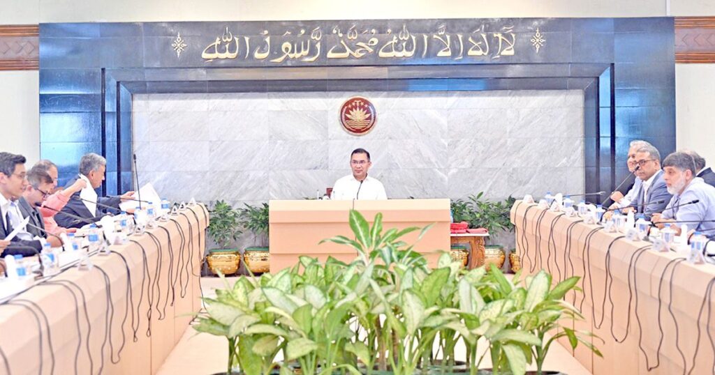 দেশের বিনিয়োগবান্ধব পরিবেশ ও শিল্পখাতের বিভিন্ন চ্যালেঞ্জ নিয়ে আলোচনার জন্য শীর্ষ ব্যবসায়ী নেতাদের সঙ্গে প্রধানমন্ত্রী তারেক রহমানের একটি বৈঠক অনুষ্ঠিত হয়েছে। শনিবার (৪ এপ্রিল) দুপুরে তেজগাঁওয়ে প্রধানমন্ত্রী কার্যালয়ে এই গুরুত্বপূর্ণ আলোচনা অনুষ্ঠিত হয়। সভায় নিরবচ্ছিন্ন জ্বালানি সরবরাহ নিশ্চিত করা, গভীর সমুদ্রবন্দর দ্রুত চালু করা, বিদেশি বিনিয়োকারীদের বিমানবন্দরের ঝামেলা না হয় দেশে সহজে আসার জন্য ব্যবস্থা নেওয়া, ব্যাংক ঋণের সুদহার কমানো, কর ব্যবস্থা সংস্কার ও বন্ধ কলকারখানা চালুর মাধ্যমে কর্মসংস্থান সৃষ্টি করার বিভিন্ন প্রস্তাব উত্থাপন করেন ব্যবসায়ী নেতৃবৃন্দ। এ সময় প্রধানমন্ত্রী তারেক রহমান বাংলাদেশে প্রথমবারের মতো বেসরকারি খাতের উপদেষ্টা পরিষদ গঠনের ঘোষণা দেন। এই পরিষদে ব্যবসায়ী প্রতিনিধিরা সরাসরি সরকারের উচ্চ পর্যায়ে ব্যবসা ও বিনিয়োগের ক্ষেত্রে হওয়া বিভিন্ন চ্যালেঞ্জ ও প্রয়োজনীয় সংস্কারের বিষয়ে মতামত দিতে পারবেন। ইতিমধ্যে এর প্রথম সভাও অনুষ্ঠিত হয়েছে। সভায় প্রধানমন্ত্রীর সঙ্গে ব্যবসায়ী প্রতিনিধিরা দেশের অর্থনৈতিক পরিস্থিতি নিয়ে বিস্তারিত আলোচনা করেন। সিদ্ধান্ত নেওয়া হয়েছে, কর ও ভ্যাট সংক্রান্ত জটিলতা, উচ্চ সুদহার, বন্দরে পণ্য খালাস ও নিবন্ধন সংক্রান্ত সমস্যা দ্রুত সমাধানের জন্য দুই বছরের সময়সীমা নির্ধারণ করা হয়েছে। এ ছাড়াও, ব্যবসা সহজ করার জন্য দেশে প্রথমবারের মতো ‘বেসরকারি খাতের পরামর্শক পরিষদ’ গঠন করে দু’বছরের পরিকল্পনা তৈরির উদ্যোগ নেওয়া হয়েছে। প্রধানমন্ত্রী বলেন, বাংলাদেশকে বৈশ্বিক প্রতিযোগিতামূলকভাবে এগিয়ে নিয়ে যেতে হলে অন্যান্য দেশের প্রমাণভিত্তিক আইন, নীতি ও নিয়ম-কানুন অন্তর্ভুক্ত করতে হবে। তিনি আরও বলেন, সরকারের সঙ্গে যৌথভাবে উদ্যোগ নিলে কার্যকর ও ব্যবসা-বান্ধব পরিবেশ গড়ে তোলা সম্ভব। পরিষদের সদস্যরা এই উদ্যোগকে স্বাগত জানিয়ে একটি সংক্ষিপ্ত প্রস্তাবনা প্রস্তুত করতে একমত হন, যেখানে ব্যবসা পরিচালনার বাধাসমূহ নিরসনে বিভিন্ন কার্যকরী কর্মপরিকল্পনা থাকবে। সচেতনতা বাড়াতে এবং সমস্যা চিহ্নিত করতে প্রধানমন্ত্রীর কার্যালয়ে বৈঠক শেষে সাংবাদিকদের অর্থমন্ত্রী আমির খসরু মাহমুদ চৌধুরী জানান, ব্যবসায়ীরা জ্বালানি সংকটের কারণে অর্থনীতিতে চাপ তৈরি হওয়ার বিষয়টি তুলে ধরেছেন। তারা নিরবচ্ছিন্ন জ্বালানি সরবরাহের আবেদন করেন এবং নবায়নযোগ্য জ্বালানি, বিশেষ করে সৌরবিদ্যুতের ব্যবহারে সরকারি সহায়তা চান। দেশের শীর্ষ ব্যবসায়ীরা শিল্প ও কারখানা চালু রাখতে এই জ্বালানি সরবরাহের বিষয়েও দাবি তুলেছেন। অর্থমন্ত্রী আরও জানিয়েছেন, বিদেশি বিনিয়োগকারীরা যেন সহ