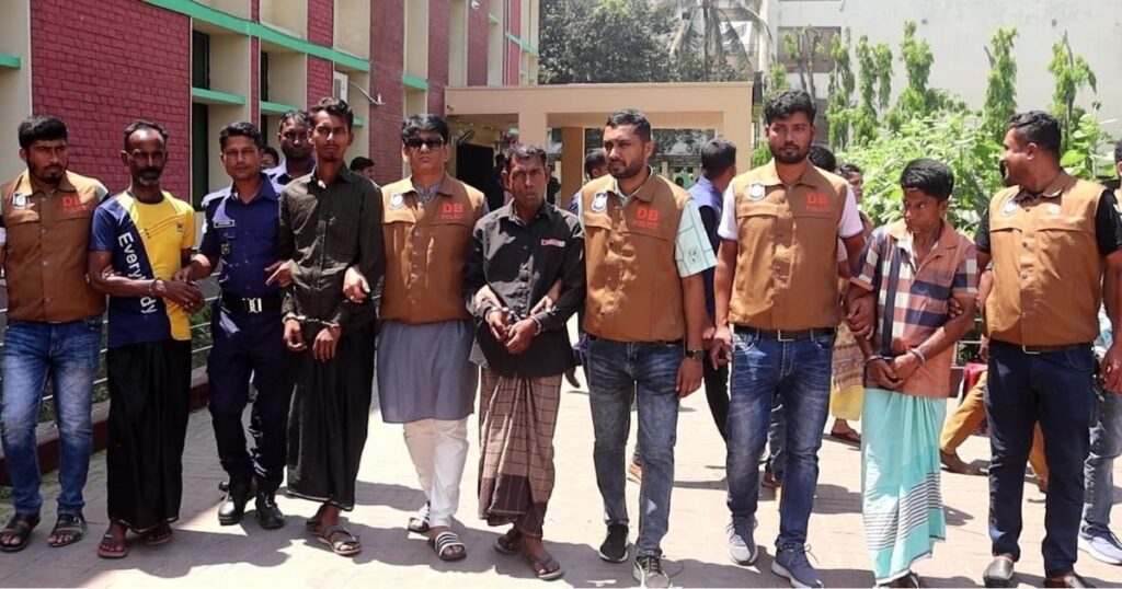 অভিযুক্তরা হলেন, নওগাঁ সদর থানার দোগাছী গ্রামের গোলাম মোস্তফা শ্যামল (৫৫), মহাদেবপুর থানার শিবরামপুর গ্রামের মোস্তাক আহমেদ জাহিদুল (৪৬), সাপাহার থানার খোট্টাপাড়া গ্রামের আবু তাহের (৫৬), ও তার ছেলে কামাল হোসেন (২৩)। তারা তাদের বিরুদ্ধে বিভিন্ন থানায় নানা মামলা রয়েছে বলে জানান পুলিশ কর্মকর্তারা।