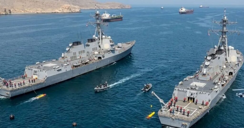 মাইন অপসারণ করতে দুই মার্কিন রণতরী ইউএসএস ফ্র্যাঙ্ক পিটারসন এবং ইউএসএস মাইকেল