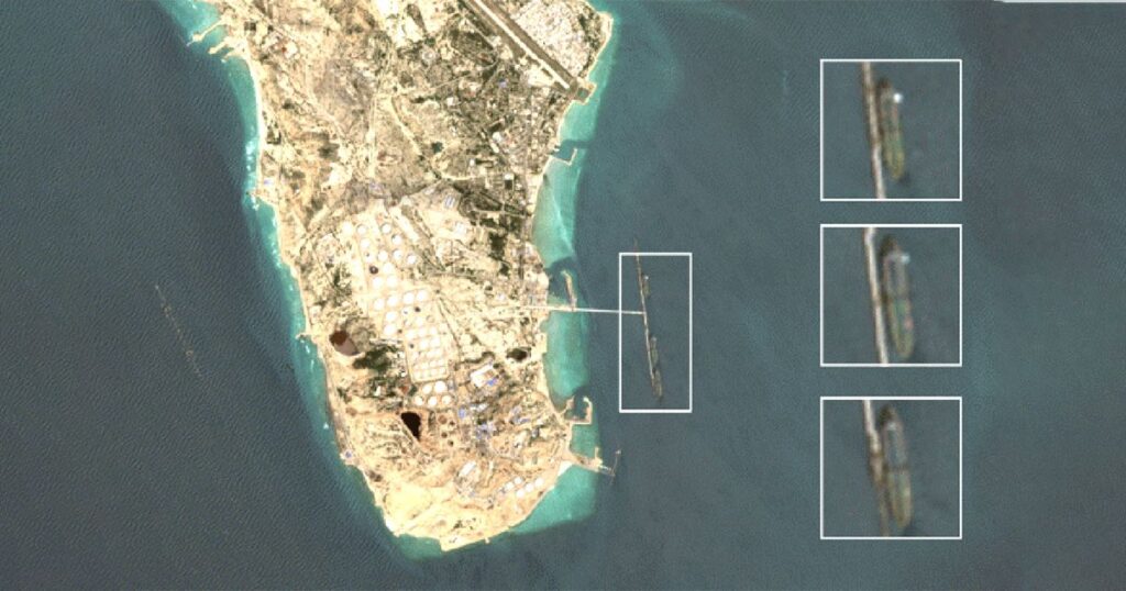 অন্যদিকে, স্যাটেলাইট ছবি দেখাচ্ছে, খারগ দ্বীপে ‘হিলডা ১’, ‘সিলভিয়া ১’ এবং ‘আম্বার’ নামে তিনটি ইরানি ট্যাংকার অবস্থান করছে। এই দ্বীপ থেকেই দেশের মোট ৯০ শতাংশ তেল রপ্তানি হয়। এ ব্যাপারে ট্যাংকার ট্র্যাকার্স জানাচ্ছে, এই তিনটি জাহাজে মোট ৫০ লাখ ব্যারেল অপরিশোধিত তেল ভরা রয়েছে।