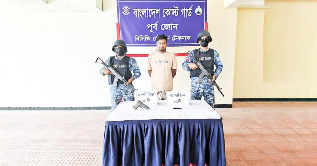 কক্সবাজারের টেকনাফে বিশেষ অভিযান চালিয়ে বিদেশি পিস্তলসহ এক মানবপাচারকারীকে আটক