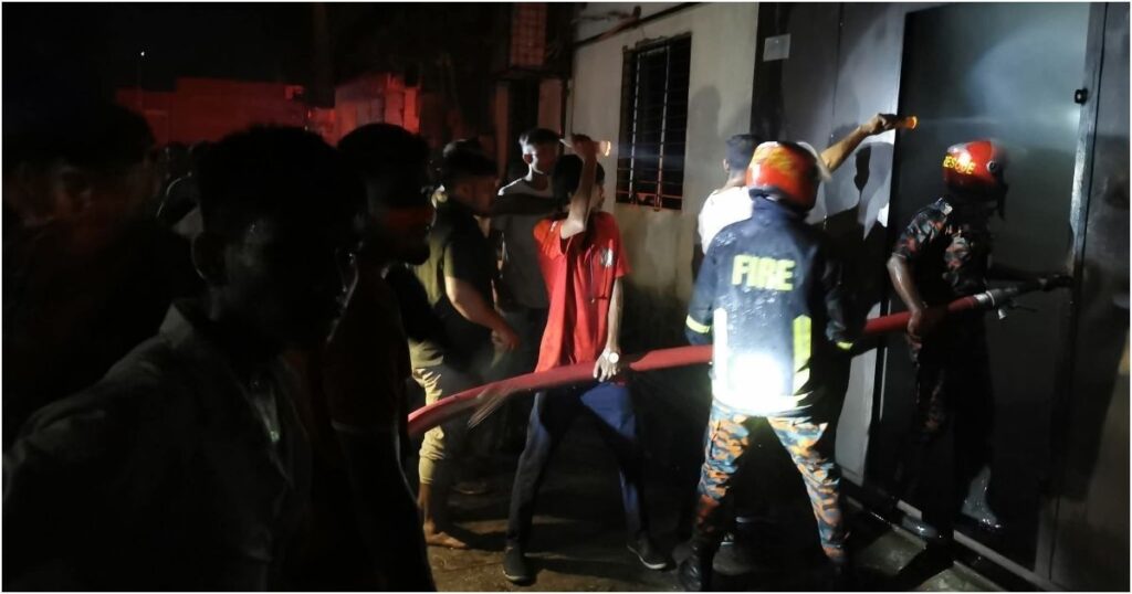 প্রত্যক্ষদর্শীরা বলছেন, শনিবার রাত নয়টার দিকে আগুন দেখা যায়। ফায়ার সার্ভিসের কর্মীরা এসে লড়াই করে রাত সাড়ে বারোটার মধ্যে আগুন নিয়ন্ত্রণে আনে। স্থানীয় এক ডিলার ইকরাম মোল্লা রানা বলেন, ‘আমার দোকান কারখানার বিপরীত পাশে, যখন দেখলাম দুইজন দৌড়ে এসে জানালার ফাঁকা দিয়ে আগুন ছড়াচ্ছে, তখন দ্রুত ফায়ার সার্ভিসকে ফোন দেওয়ার চেষ্টা করি। তবে অসচেতনতা ও বন্ধ থাকায় ফোন ধরেনি, তাই দেরিতে খবর পৌঁছেছে। যদি সঠিক সময়ে খবর দিতে পারতাম, হয়তো ক্ষতি কম হত।’