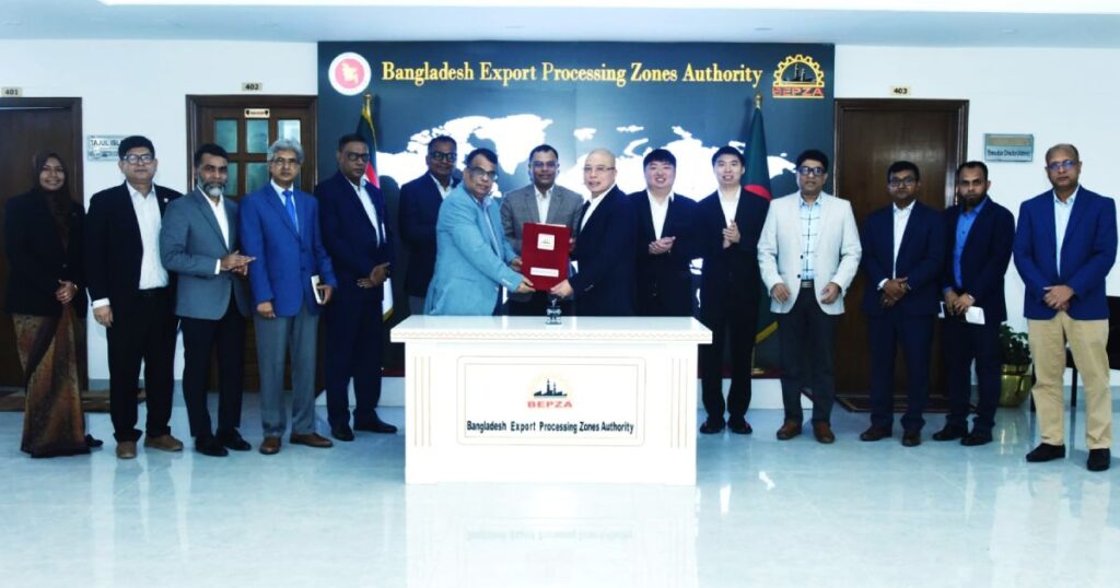 নির্বাহী চেয়ারম্যান মেজর জেনারেল আবুল কালাম মোহাম্মদ জিয়াউর রহমান, বিএসপি, এনডিসি, পিএসসি এর উপস্থিতিতে এই চুক্তি সম্পাদিত হয়। বেপজার সদস্য (বিনিয়োগ উন্নয়ন) মোঃ আশরাফুল কবীর এবং কেএমকে ইন্ডাস্ট্রিয়াল লিমিটেডের চেয়ারম্যান মি. উ ইউজিয়াং নিজ নিজ প্রতিষ্ঠান থেকে ১৪ সেপ্টেম্বর, ২০২৫ তারিখে এই চুক্তিতে স্বাক্ষর করেন।