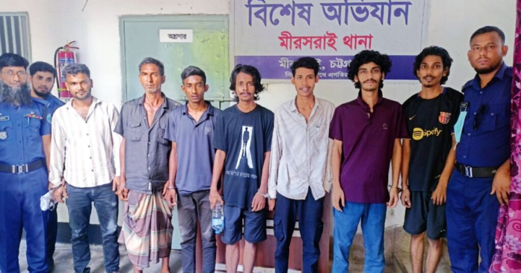 আটকরা হলেন, উপজেলার খৈয়াছড়া ইউনিয়নের ৫নং ওয়ার্ডের পূর্ব পোল মোগরা এলাকার মৃত অলিউর রহমানের ছেলে রেজাউল করিম (৪৮), মঘাদিয়া ইউনিয়নের সরকারটোলা এলাকার ওয়াহেদুর রহমানের ছেলে ওমর ফারুক (২১), করেরহাট ইউনিয়নের দক্ষিণ অলিনগর এলাকার আবুল কালামের ছেলে মো. নাজমুল হামিদ (২১), সীতাকুণ্ড উপজেলার পশ্চিম আমিরাবাদ এলাকার জয়নাল আবেদীনের ছেলে সাজ্জাদ হোসেন সাকিব (২২), মীরসরাই পৌরসভার ৭ নং ওয়ার্ডের পশ্চিম আমবাড়িয়া এলাকার মৃত আবু বক্কর সিদ্দিকের ছেলে কায়সার সিদ্দিক ফাহাদ (২২), মীরসরাই সদর ইউনিয়নের উত্তর তালবাড়িয়া এলাকার নুরুল করিমের ছেলে তারেক হোসেন (২০), এবং মীরসরাই পৌরসভার ৬ নম্বর ওয়ার্ডের গোভনীয়া এলাকার শামছুদ্দিনের ছেলে বাবুল (২৭)। বাবুলের নামে এক ব্যক্তির বিরুদ্ধে মাদকদ্রব্য নিয়ন্ত্রণ আইনে একটি মামলা রয়েছে।