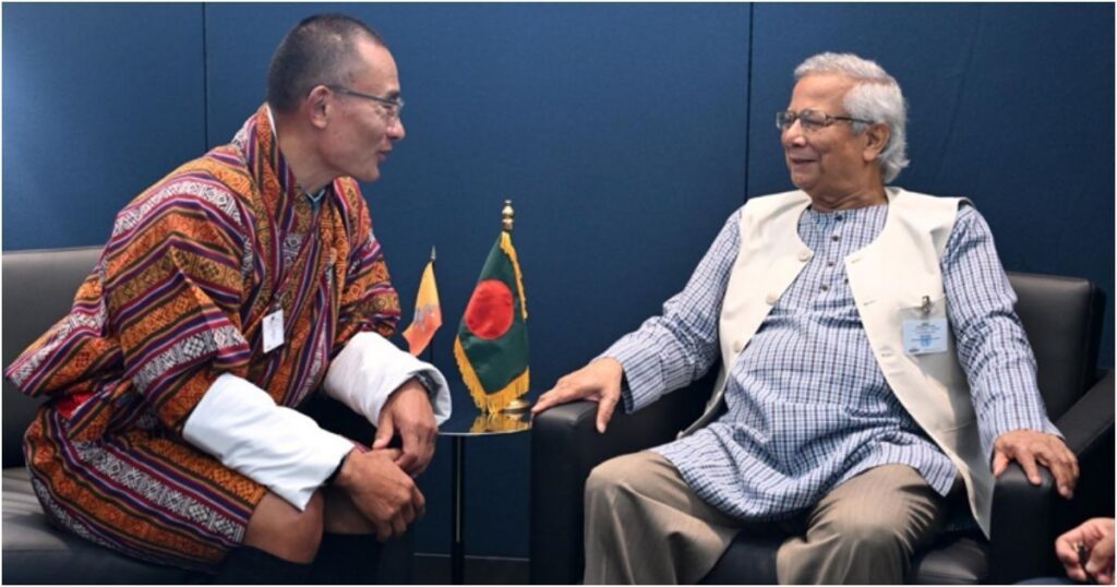 ভুটানের প্রধানমন্ত্রী শেরিং তোবগে বাংলাদেশের সঙ্গে মুক্ত বাণিজ্য চুক্তি (এফটিএ) স্বাক্ষর ও দুই দেশের অর্থনৈতিক অঞ্চলগুলোর মধ্যে সংযোগ স্থাপনে গভীর আগ্রহ প্রকাশ করেছেন। তিনি বলেন, এই উদ্যোগ বাণিজ্য ও বিনিয়োগের জন্য নতুন দিগন্ত সম্প্রসারিত করবে। জাতিসংঘের ৮০তম সাধারণ পরিষদের অধিবেশনের ফাঁকে শুক্রবার সংস্থাটির সদর দপ্তরে বাংলাদেশের প্রধান উপদেষ্টা অধ্যাপক মুহাম্মদ ইউনূসের সঙ্গে বৈঠকে এসব প্রস্তাব দেন তোবগে। তিনি জানিয়েছেন, ভুটানের বিশেষ অর্থনৈতিক অঞ্চল ‘গেলেপু মাইন্ডফুলনেস সিটি’ (জিএমসি)-কে কুড়িগ্রামে অবস্থিত ভুটানি বিনিয়োগকারীদের জন্য বরাদ্দ করা বিশেষ অর্থনৈতিক অঞ্চলের সঙ্গে যুক্ত করা হলে উভয় দেশ ব্যাপকভাবে উপকৃত হবে। অধ্যাপক ইউনূস এই প্রস্তাবকে স্বাগত জানিয়ে বলেন, ‘বাংলাদেশ ও ভুটান উন্নত যোগাযোগ, বাণিজ্য ও বিনিয়োগের মাধ্যমে দ্বিপাক্ষিক সম্পর্ককে নতুন উচ্চতায় নিয়ে যেতে পারে।’ তিনি আরও বলেন, দুই দেশকে বাণিজ্য ও বিনিয়োগের সকল সুযোগ অনুসন্ধান করার আহ্বান জানাচ্ছি। ভুটানের প্রধানমন্ত্রী ধর্মীয় পর্যটন বৃদ্ধির পরিকল্পনাও তুলে ধরেন। তিনি জানিয়েছেন, বাংলাদেশি বৌদ্ধ ভিক্ষুরা ভুটানে যেতে পারলে পর্যটন বিকাশে তা গুরুত্বপূর্ণ ভূমিকা রাখবে। তোবগে জানান, ভুটান তাদের জলবিদ্যুৎ সম্ভাবনাকে বাংলাদেশের জন্য কাজে লাগাতে চায়। একই সঙ্গে, তিনি উল্লেখ করেন, ভুটানের ওষুধশিল্পে বাংলাদেশি বিনিয়োগ গ্রহণ করতে তাদের সরকার আগ্রহী। এছাড়াও, তিনি ফাইবার অপটিক সংযোগ স্থাপনে বাংলাদেশের সহায়তা কামনা করেন। দু’দেশের নেতারা রোহিঙ্গা সংকট নিয়েও আলোচনা করেন। ভুটানের প্রধানমন্ত্রী জানান, রোহিঙ্গা ইস্যুতে ৩০ সেপ্টেম্বর জাতিসংঘের আয়োজিত পূর্ণাঙ্গ অধিবেশনে তাঁর দেশ অংশ নেবে। অধ্যাপক ইউনূসের নেতৃত্ব প্রশংসা করে তোবগে বলেন, বাংলাদেশ এখন ‘সঠিক নেতৃত্বে রয়েছে’। তিনি তাঁকে তাঁর ব্যক্তিগত ‘আদর্শ’ হিসেবে উল্লেখ করে শ্রদ্ধাভরে সম্বোধন করেন—‘মাই প্রফেসর।’ ভুটানের প্রধানমন্ত্রী সম্প্রতি থিম্পুতে উদ্বোধন হওয়া বাংলাদেশের নতুন চ্যান্সারি ভবনের নকশারও প্রশংসা করেন, যা ‘হিমালয়ের পাদদেশে বঙ্গোপসাগর’ থিমে নির্মিত। বৈঠকে প্রধান উপদেষ্টা অধ্যাপক ইউনূস ভুটানের প্রধানমন্ত্রীকে বাংলাদেশ সফরের আমন্ত্রণ জানান। তোবগে সেই আমন্ত্রণ গ্রহণ করে বলেন, তিনি সম্ভবত আগামী ফেব্রুয়ারির মধ্যে, যখন বাংলাদেশে নির্বাচনের সময় রয়েছে, এই সফর করবেন।