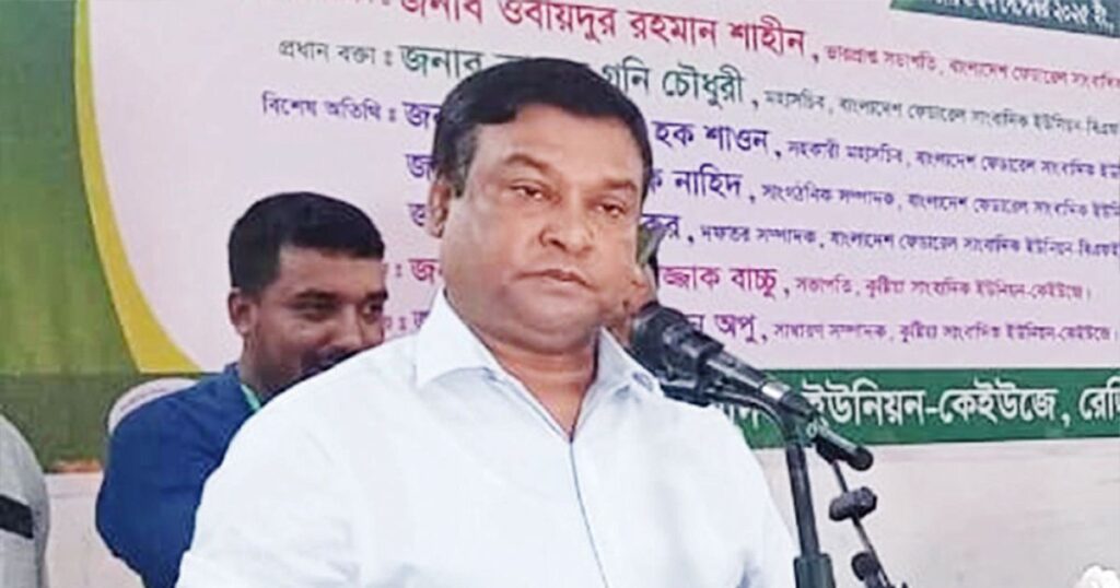 বাংলাদেশ ফেডারেল সাংবাদিক ইউনিয়নের মহাসচিব কাদের গনি চৌধুরী বলেছেন, পেশাজীবীদের মধ্যে সাংবাদিকরা সবচেয়ে বেশি নীতি ও সততার প্রতি সচেতন। তিনি বলেন, না হলে এ সমাজ টিকে থাকা অসম্ভব। সাংবাদিকরা বিভিন্ন চাপ, বিপত্তি ও চ্যালেঞ্জের মধ্য দিয়ে সত্য তুলে ধরতে অগাধ দায়িত্ববোধের পরিচয় দেয়। শনিবার কুষ্টিয়ার জেলা শিল্পকলা একাডেমি ভবনের সভাকক্ষে কুষ্টিয়া সাংবাদিক ইউনিয়নের (কেইউজে) সাধারণ সভায় প্রধান বক্তার বক্তব্যে তিনি এসব কথা বলেন।