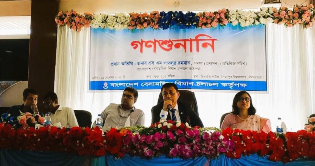 ৪০ ডিসেম্বর ২০২৫ তারিখে, মন্ত্রিপরিষদ বিভাগের সচিব (সমন্বয় ও সংস্কার) মহোদয় নেতৃত্বে এক গুরুত্বপূর্ণ সভায় সকল দপ্তর এবং সংস্থায় মাসিক ভিত্তিতে গণশুনানির আয়োজনের সিদ্ধান্ত নেওয়া হয়। এই সিদ্ধান্তের অংশ হিসেবে, বিমানবন্দরের সেবার মান উন্নয়নের জন্য বাংলাদেশ বেসামরিক বিমান চলাচল কর্তৃপক্ষ (বেবিচক) দিনাজপুরের সৈয়দপুর বিমানবন্দরে আজ, ২৯ সেপ্টেম্বর ২০২৫, সোমবার বিকাল ২:১৫ মিনিটে একটি গণশুনানি আয়োজন করে।