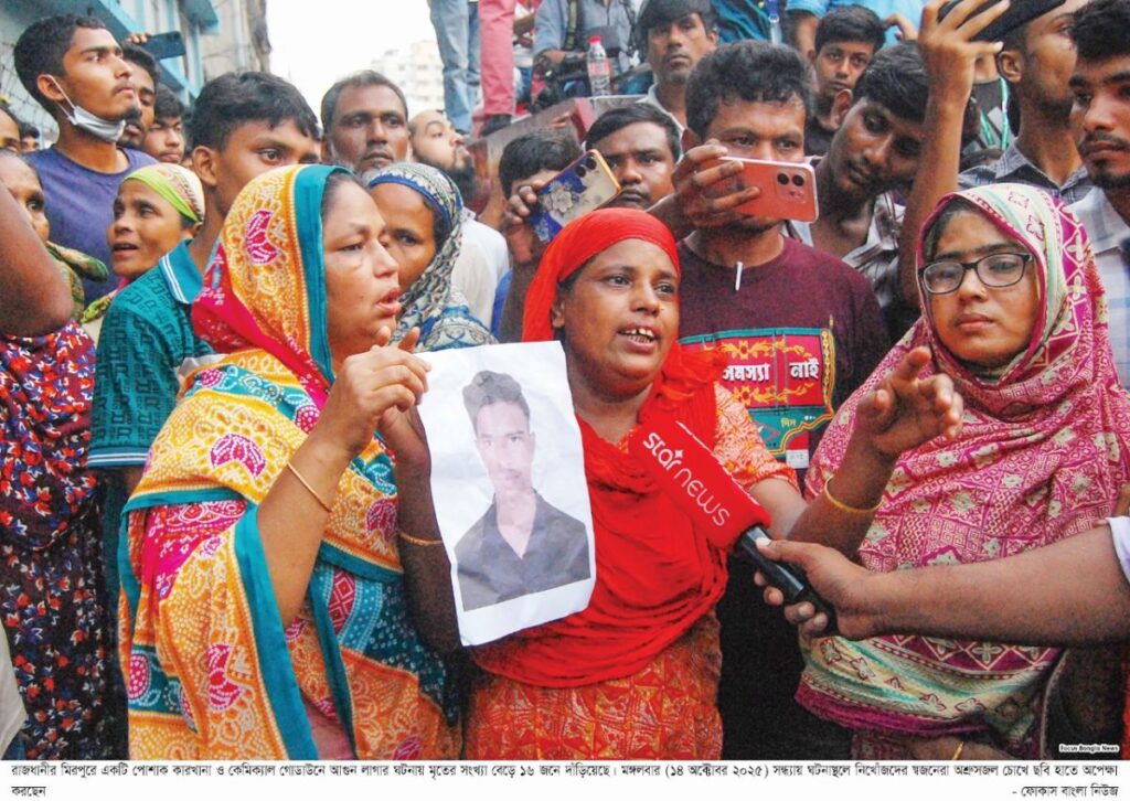 রাজধানীর মিরপুরের রূপনগরে ভয়াবহ অগ্নিকাণ্ডে এখন পর্যন্ত কমপক্ষে ১৬ জন নিহত হয়েছেন। ঘটনায় আরও অনেকের নিখোঁজের খবর পাওয়া যাচ্ছে, যেখানে স্বজনেরা আতঙ্কে হতবম্ব ও উদ্বিগ্ন হয়ে উদ্ধারকাজে অংশ নিচ্ছেন। গতকাল মঙ্গলবার সকালে এই ভবনটিতে অগ্নিকা-ের সূত্রপাত হয়, যা দাউদাউ করে জ¦লে ওঠে। জানানো হয়েছে, প্রথমে পোশাক কারখানার ভেতরে আগুন লাগে, এরপর সেটি পাশের রাসায়নিক গুদামেও ছড়িয়ে পড়ে। বিস্ফোরণের শব্দ ও ক্ষয়ক্ষতি দেখে স্থানীয়রা আতঙ্ক Retreat করে দুর্ঘটনা বুঝতে পেরে দ্রুত সাহায্যকারী সংস্থা খবর দেয়। ফায়ার সার্ভিসের কর্মকর্তারা ঘটনাস্থলে উপস্থিত হয়ে দ্রুত আগুন নিয়ন্ত্রণে আনার কাজ শুরু করেন। তারা জানায়, অগ্নিকাণ্ডের প্রথম পর্যায়ে ৯ জনের লাশ উদ্ধার করা হয়। পরে আরও ৭টি মরদেহ উদ্ধার হয়েছে, এতে মৃতের সংখ্যা বেড়ে দাঁড়িয়েছে ১৬ জন। আহত অনেককেই আশঙ্কাজনক অবস্থায় ঢাকা মেডিকেল কলেজ হাসপাতালে ভর্তি করা হয়েছে। ফায়ার সার্ভিসের উপদেষ্টা ও কর্মীরা জানিয়েছেন, আগুনের মূল উৎস হওয়া রাসায়নিক গুদামে ব্লিচিং পাউডার, প্লাস্টিক, হাইড্রোজেন পার-অক্সাইডসহ নানা ধরনের ক্ষতিকর রাসায়নিক ছিল, যেগুলোর কোনোরকম অনুমোদন ছিল না। বিস্ফোরণ ও বিষাক্ত ধোঁয়ার কারণে পরিস্থিতি খুবই ঝুঁকিপূর্ণ। আশঙ্কা করা হচ্ছে, আগুনে আরও প্রাণহানি হতে পারে, কারণ এখনও অনেক মরদেহ শনাক্ত করতে পারে নি এবং তল্লাশি চালানো হচ্ছে। ভবনটির ছাদে লকডাউন থাকার কারণে অনেক শ্রমিকের উদ্ধার অভিযানে প্রতিবন্ধকতা সৃষ্টি হয়েছে। ভবনের অগ্নি নিরাপত্তা মানদণ্ড ও লাইসেন্স না থাকায় এ দুর্ঘটনার প্রকট অবস্থা আরও গভীর হয়ে উঠেছে। তদন্তে দেখা গেছে, আগুন সনাক্তের জন্য প্রয়োজনীয় প্রযুক্তি ব্যবহার করা হচ্ছে, তবে অগ্নিকাণ্ডের নির্দিষ্ট কারণ এখনো স্পষ্ট নয়। প্রত্যক্ষদর্শীরা জানান, প্রথম আগুনটি ওয়াশ ইউনিট থেকে শুরু হয়, যা রাসায়নিক গুদামের সঙ্গে সংযুক্ত। এরপর দ্রুত আগুন ছড়িয়ে পড়ে ভবনের বিভিন্ন অংশে। এই দুর্যোগে আহতরা ও মৃতদের পরিবারের প্রতি শোক প্রকাশ করেছেন প্রধান উপদেষ্টা অধ্যাপক মুহাম্মদ ইউনূস ও বিএনপির ভারপ্রাপ্ত চেয়ারম্যান তারেক রহমান। তারা নিহতের পরিবারের প্রতি সমবেদনা জানান এবং দুর্ঘটনার কারণ দ্রুত অনুসন্ধানের জন্য প্রয়োজনীয় ব্যবস্থা গ্রহণের আহ্বান জানান। সবশেষে, অগ্নিকাণ্ডের পর তদন্ত ও সুরক্ষাবিধানের উপর গুরুত্বারোপ করে সংশ্লিষ্ট কর্তৃপক্ষের কাছে দাবি জানানো হচ্ছে যাতে ভবিষ্যতে এই ধরনের ঘটনার পুনরাবৃত্তি রোখা যায়।