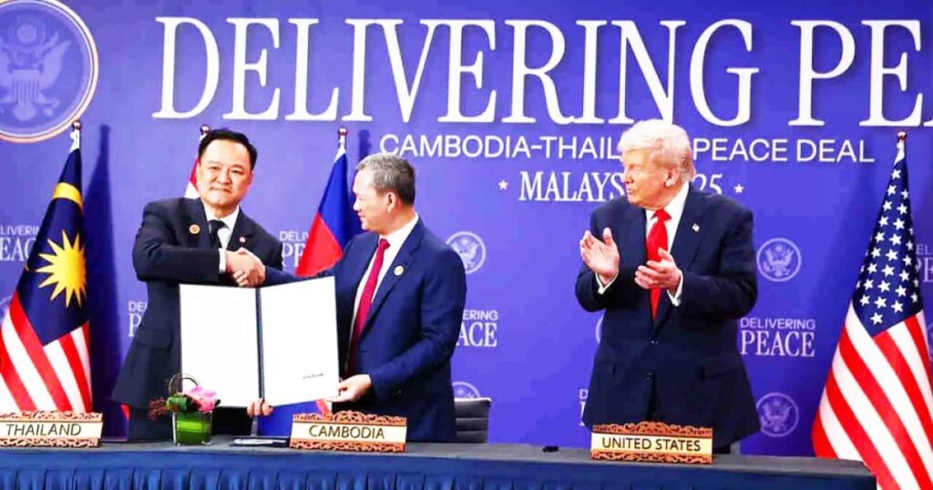 দক্ষিণ-পূর্ব এশিয়ার দুই দেশের মধ্যে দীর্ঘ দিনের সীমান্ত বিরোধের অবসান ঘটিয়ে এক ঐতিহাসিক যুদ্ধবিরতি চুক্তি স্বাক্ষর হয়েছে। এই চুক্তির মাধ্যমে থাইল্যান্ড ও কম্বোডিয়া শান্তিপূর্ণ সম্পর্ক প্রতিষ্ঠার পথ সুগম হলো। বিশেষ বিষয় হলো, এই গুরুত্বপূর্ণ চুক্তিতে স্বাক্ষর করেছেন দক্ষিণ-পূর্ব এশিয়ার চরমপন্থী নেতারা, যার মধ্যে রয়েছে দু’দেশের শীর্ষ নেতারা। এ সময় পেরেছিলো পর্যবেক্ষক ও আন্তর্জাতিক মাধ্যমের নজরদারি, কারণ তারা জানতে চাইছিলেন কীভাবে এই বিরোধপূর্ণ পরিস্থিতি শান্তিপূর্ণ সমাধানে এগিয়ে যায়।