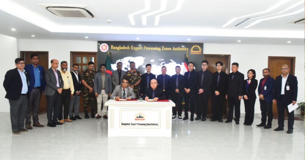 বৃহস্পতিবার বেপজা কমপ্লেক্সে অনুষ্ঠিত এই চুক্তি স্বাক্ষর অনুষ্ঠানে উপস্থিত ছিলেন বেপজার নির্বাহী চেয়ারম্যান মেজর জেনারেল মোহাম্মদ মোয়াজ্জেম হোসেন। তার পক্ষ থেকে মো. আশরাফুল কবীর চুক্তিতে স্বাক্ষর করেন। অন্যদিকে, চুক্তিতে সই করেছেন তাই মা শুজ (বিডি) কোম্পানির চেয়ারম্যান লিয়াও ওয়েইজুন, বাংলাদেশ সংশ্লিন লেদার কোম্পানির মহাব্যবস্থাপক ঝাং গুয়াংজিন, অ্যানরে হোল্ডিং (বিডি) কোম্পানির মহাব্যবস্থাপক হু জিনলিন এবং র্যাপটক্স ইন্ডাস্ট্রিজের ব্যবস্থাপনা পরিচালক মো. মোর্শেদ খান।