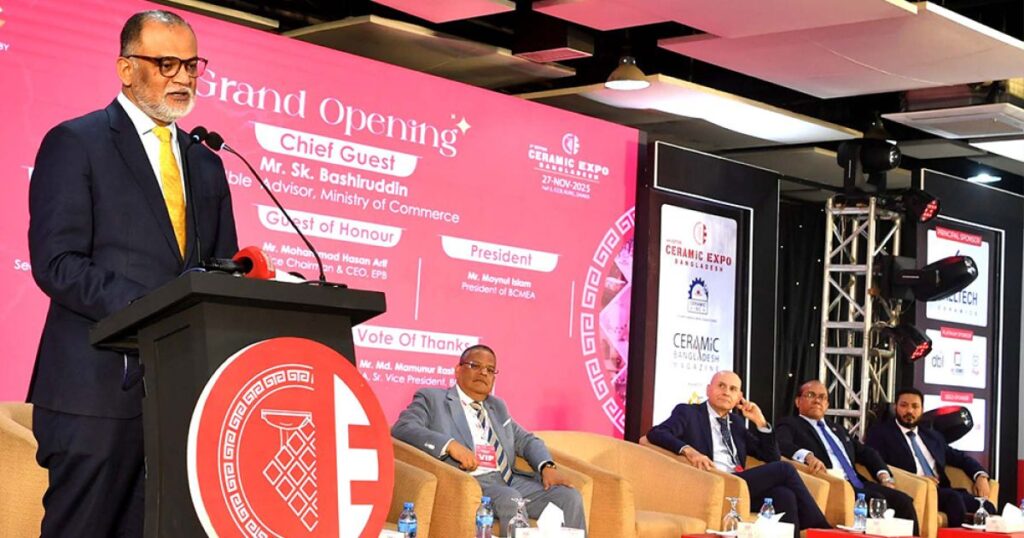 রপ্তানি খাত হিসেবে সিরামিক শিল্পের সম্ভাবনা পূর্ণাঙ্গভাবে কাজে লাগানোর জন্য ব্যবসায়ীদের প্রতি বার্তা দিয়েছেন বাণিজ্য উপদেষ্টা শেখ বশিরউদ্দীন। ইন্টারন্যাশনাল কনভেনশন সিটি বসুন্ধরাতে অনুষ্ঠিত ‘চতুর্থ সিরামিক এক্সপো বাংলাদেশ-২০২৫’ এর উদ্বোধনী অনুষ্ঠানে প্রধান অতিথি তিনি এ আহ্বান জানিয়ে বলেন, শুধু অভিযোগ করার পরিবর্তে যৌক্তিক, গ্রহণযোগ্য ও বাস্তবসম্মত প্রস্তাব নিয়ে আসা প্রয়োজন। সরকারের পক্ষ থেকে সবসময় সহযোগিতার আশ্বাস দেওয়া হয়েছে এবং যেনো ব্যবসায়ীরা সুবিধা পান, সে ব্যাপারে বিষদে মনোযোগী রয়েছে দেশের প্রশাসন। তবে, এগুলোর জন্যmustই ন্যায্যতা ও মানসম্পন্ন শিল্পসম্মত আচরণের ভিত্তিতে সিদ্ধান্ত নেওয়া উচিত। শেখ বশিরউদ্দীন উল্লেখ করেন, দেশের বর্তমান রাজনৈতিক পরিস্থিতি প্রমাণ করেছে, অতীতের মতো সংযোগ নির্ভর ব্যবসা আর চলবে না। এখন সময় যোগ্যতা, দক্ষতা ও প্রযুক্তির উপর নির্ভর করার। প্রথমত, পোশাক খাতে মাত্র এক যুগে বাংলাদেশের রপ্তানি খাত বড় অঙ্কে বিকশিত হলেও সিরামিক শিল্প এখনও তার সুবর্ণ সুযোগ গ্রহণে অনেকটাই পিছিয়ে রয়েছে। তিনি প্রশ্ন তোলে, কেনো এ শিল্পে আগের মতো অগ্রগতি দেখা যাচ্ছে না? এর কারণ হিসেবে উল্লেখ করেন, টেকসই খরচ, প্রতিযোগিতা সক্ষমতা, আধুনিক ডিজাইন, দক্ষ লজিস্টিক ব্যবস্থা, উৎপাদনশীলতা ও জ্বালানি ব্যবস্থাপনায় রয়েছে এখনও চ্যালেঞ্জ। এসব সমস্যা চিহ্নিত করে বাস্তবসম্মত সমাধানে যেতে হবে। বৃহস্পতিবার শুরু হওয়া এ শিল্প মেলা চলবে ৩০ নভেম্বর পর্যন্ত। এই প্রতিযোগিতামূলক ও বিশাল আয়োজনের আয়োজন করছেন বাংলাদেশ সিরামিক ম্যানুফ্যাকচারার্স অ্যান্ড এক্সপোর্টার্স অ্যাসোসিয়েশন (বিসিএমইএ)। মেলার উদ্বোধনী অনুষ্ঠানে সভাপতিত্ব করেন অ্যাসোসিয়েশনের সভাপতি মইনুল ইসলাম। এতে উপস্থিত ছিলেন বাংলাদেশে নিযুক্ত ইতালির রাষ্ট্রদূত অ্যান্তেনিও আলেসান্দ্রো, ইপিবির ভাইস চেয়ারম্যান মোহাম্মদ হাসান আরিফ, ও মেলা কমিটির চেয়ারম্যান ও বিসিএমইএর সাধারণ সম্পাদক ইরফান উদ্দীন। সিরামিক এক্সপোতে বাংলাদেশসহ মোট ২৫টি দেশের ১৩৫টি প্রতিষ্ঠান ও ৩০০ ব্র্যান্ড অংশ নিচ্ছে। এর সঙ্গে যুক্ত হয়েছেন প্রায় পাঁচ শতাধিক আন্তর্জাতিক প্রতিনিধি ও ক্রেতা। এই আয়োজন দেশের চতুর্থ ও এশিয়ার অন্যতম বৃহৎ আন্তর্জাতিক প্রদর্শনী, যেখানে তিন দিনব্যাপী বিভিন্ন সেমিনার, চাকরির মেলা, B2B ও B2G মিটিং, লাইভ ডেমোনস্ট্রেশন, স্পট অর্ডার, র‌্যাফেল ড্র, ও নতুন পণ্যের উদ্বোধন অনুষ্ঠিত হবে। প্রতিদিন সকাল ১০টা থেকে সন্ধ্যা ৬টা পর্যন্ত দর্শকদের জন্য উন্মুক্ত থাকবে। উল্লেখ্য, বর্তমানে দেশে টেবিলওয়্যার, টাইলস ও স্যানিটারি ওয়্যারের মতো বিভিন্ন খাতে শতাধিক কারখানা গড়ে উঠেছে