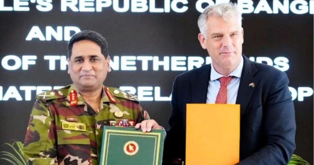 বৃহস্পতিবার (১১ ডিসেম্বর), ঢাকায় সেনানিবাসে বাংলাদেশ সরকারের সশস্ত্র বাহিনী বিভাগ, বাংলাদেশতা ও নেদারল্যান্ডসের মধ্যে নতুন এক নৌ-প্রতিরক্ষা সমঝোতা স্মারক (এমওইউ) স্বাক্ষরিত হয়েছে। এই চুক্তি সশস্ত্র বাহিনী বিভাগের তত্ত্বাবধানে সম্পন্ন হয় যাতে দুই দেশের মধ্যে আরও দৃঢ় সহযোগিতা গড়ে তুলতে সহায়তা করবে।