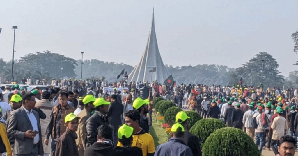 মহান বিজয় দিবসের উৎসব ও একাত্তরের বীর শহীদদের স্মরণে সাভারের জাতীয় স্মৃতি সৌধে মানুষের উপচে পড়া ভিড় দেখা গেছে। মঙ্গলবার (১৬ ডিসেম্বর) ভোর থেকেই সূর্য ওঠার সঙ্গে সঙ্গেই লাল-সবুজ পতাকা হাতে বিভিন্ন বয়সের মানুষ এসে জমায়েত হন। শিশুরা থেকে বয়স্করাও এসে ‘জয় বাংলা’ স্লোগানে মুখর করে তোলে পুরো এলাকা। খণ্ড খণ্ড মিছিল নিয়ে হাজারো মানুষ শহীদদের প্রতি বিনম্র শ্রদ্ধা ও ভালোবাসা জানাতে সেখানে উপস্থিত হন।