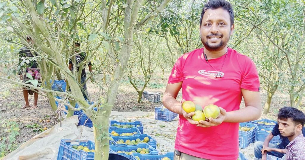 মাগুরা সদর উপজেলার দ্বারিয়াপুর গ্রামে এক তরুণ শিক্ষক নিজ উদ্যোগে গড়ে তুলেছেন একটি মিশ্র ফলের বাগান, যা 그의 নতুন সফলতার পথ তৈরি করেছে। সাদমান সাকির সোহাগ, তিনি আলাইপুর আলিম মাদ্রাসার শিক্ষক, তার বাবার রেখে যাওয়া সাতশো শতাংশ জমিতে এই বাগান গড়ে তুলেছেন। শিক্ষকদের পেশায় যা সাধারণত জীবিকা নির্বাহের জন্য কম হয়ে থাকে, সেখানে তিনি আরও বেশি আগ্রহ দেখিয়ে গাছ লাগানোর সিদ্ধান্ত নেন। ২০২০ সাল থেকে শুরু হয় তার এই বাগান উদ্যোগ, যেখানে তিনি বিভিন্ন দেশি-বিদেশি ফলের গাছ লাগিয়েছেন – যেমন বারোমাসি কমলা, মাল্টা, পেয়ারা, পেঁপে, সফেদা, কদবেল, ডালিম, আমড়া, ও বিভিন্ন প্রকার ফল। এর পাশাপাশি তিনি পুকুর কেটে মাছের চাষ শুরু করেছেন, যেখানে রয়েছে রুই, কাতলা, মৃগেলসহ নানা প্রজাতির মাছ। বিশেষ করে কমলার চাষে তার ব্যাপক সফলতা এসেছে। প্রথমে ৪০০ চারা নিয়ে বাগান শুরু করেছিলেন, এখন সেখানে ১৪০০ কমলার গাছ রয়েছে। ফলনের মাধ্যমে তিনি প্রতি মৌসুমে এক থেকে দেড় লাখ টাকা লাভ করেন, যেখানে প্রতি কেজি কমলা বিক্রি হয় ২০০-২২০ টাকায়। তার এই উদ্যোগের কারণে তিনি শুধু নিজের জীবিকা নির্বাহ בלבד করে থাকেন না, নতুন তরুণদের জন্য অনুপ্রেরণাদায়ক একজন উদ্যোক্তা হিসেবে পরিচিতি লাভ করেছেন। তিনি জানান, মাঠে পানি সরবরাহের জন্য তিনি ১৪ হাজার ৪০০ ওয়ার্ডের সোলার প্যানেল বসিয়েছেন, যা দিয়ে ১১ হর্স পাওয়ারের মোটর চালানো হয় এবং আশেপাশের আরও ২০০ বিঘা জমির জল সরবরাহ হয়। সোহাগ বলছেন, আমি শিক্ষকতাকে আমার পেশা হিসেবে বেছে নিয়েছি, তবে গাছ লাগানোর শখ আমার ছিল ছোট থেকেই। আমি চাই আমার মতো আরও শিক্ষিত তরুণরা স্বাবলম্বী হোক, বাড়িতে বা আশেপাশে যতটুকু জায়গা আছে সেখানে কিছু গাছ লাগাক। এতে পরিবেশের ভারসাম্য বজায় থাকবে এবং দেশের বেকারত্বও কমে যাবে। কমলা চাষে কর্মরত ইকরামুল বলেন, আমাদের প্রতিদিন গাছের যত্ন নিই, ফল সংগ্রহ করি এবং বিক্রি করি। সোহাগ ভাই আমাদের প্রতিদিনের মজুরি দিয়ে থাকেন, যা থেকে আমাদের সংসার চলে। তাঁর বাগানের কমলা খুবই সুস্বাদু, রসালো, এবং মাগুরার বাজারে চাহিদা দিন দিন বাড়ছে। ড্রাইভার বলেছেন, আমরা প্রতি বছর কমলা ক্যারেটে করে ঝিনাইদহের কোটচাঁদপুর থেকে ঢাকাসহ দেশের বিভিন্ন জেলায় বিক্রির জন্য নিয়ে যাই। মাগুরা কৃষি বিভাগের নবাগত কর্মকর্তা মাসুদ রানা জানিয়েছেন, তরুণ উদ্যোক্তা হিসেবে সাদমান সাকিব সোহাগের এই উদ্যোগ অবশ্যই প্রশংসার যোগ্য। কৃষি বিভাগ সব সময় এই ধরনের উদ্যোক্তাদের পাশে থাকছে এবং পরামর্শ ও সহযোগিতা দিয়ে চলেছে।